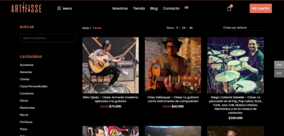 Pagina de «tienda» de un sitio web desarrollado por eydesign.co
